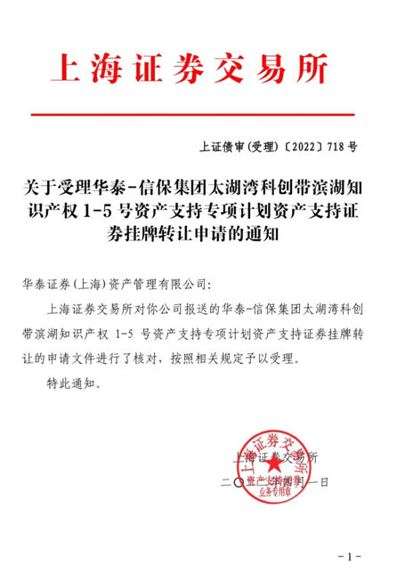 4月1日,上交所正式受理“華泰—信保集團太湖灣科創(chuàng)帶濱湖知識產(chǎn)權1-5號資產(chǎn)支持專項計劃”。該計劃為江蘇省首單支持區(qū)域集成電路及核心信息技術等科技產(chǎn)業(yè)集群的知識產(chǎn)權類資產(chǎn)證券化項目。