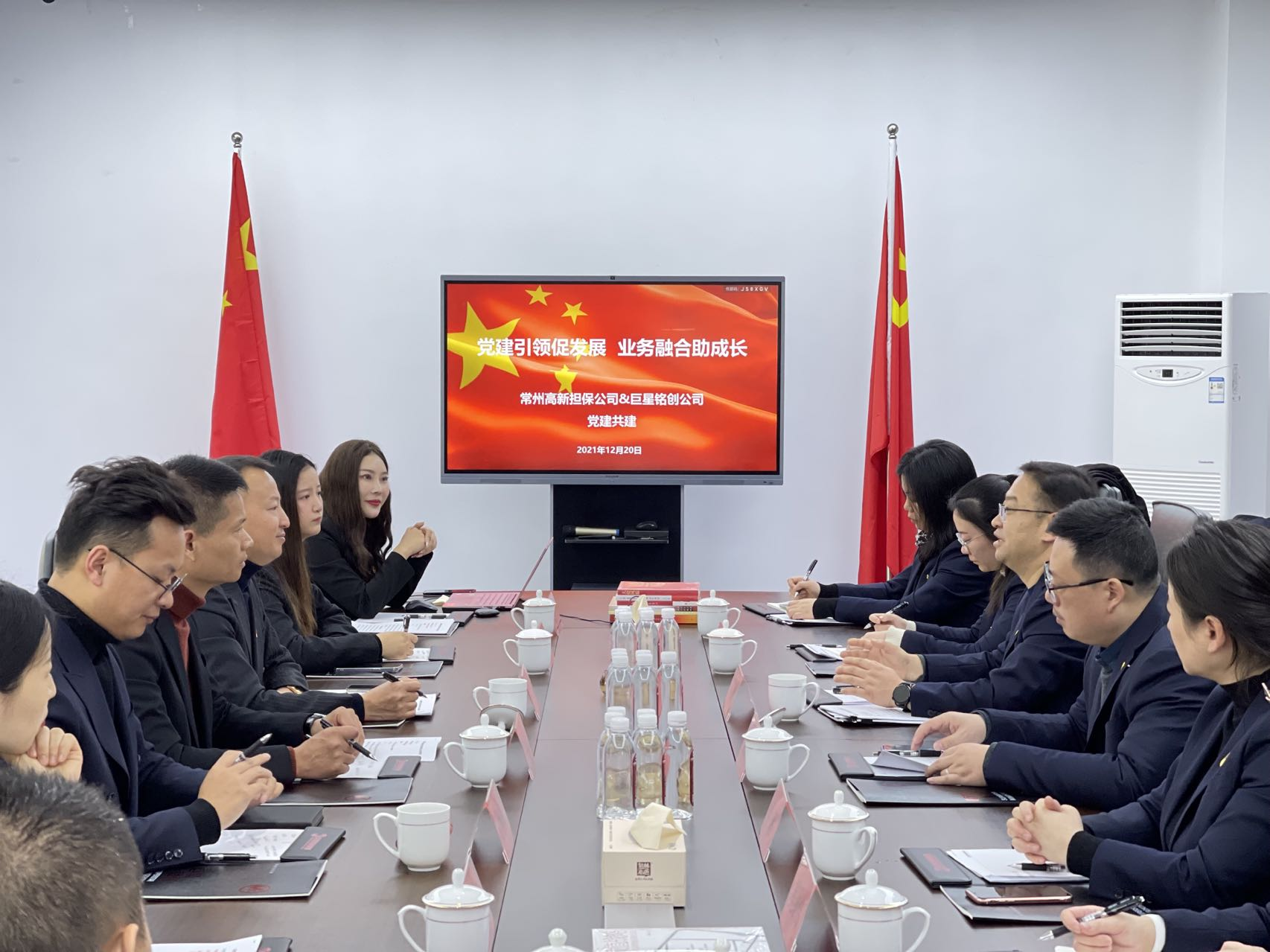 12月20日,常州高新?lián)9窘M織常州分公司、武進(jìn)擔(dān)保公司有關(guān)人員,深入常州巨星銘創(chuàng)公司走訪調(diào)研,開展黨建共建活動。