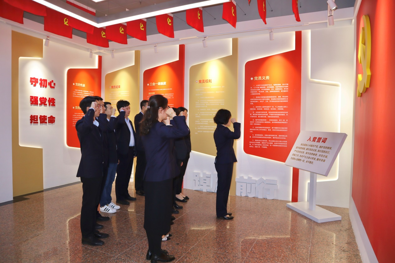 鏗鏘誓詞,字字千鈞。在革命烈士紀念館黨員宣誓室內(nèi),全體黨員面向中國共產(chǎn)黨黨旗,高舉右手、緊握拳頭,以鏗鏘有力的聲音重溫入黨誓詞,重憶入黨初心,再一次接受黨性洗禮。大家立志繼承先烈遺志,銘記先烈偉績,延續(xù)紅色血脈,堅定前進信念,在新征程上扛起“爭當表率、爭做示范、走在前列”的責任擔當。