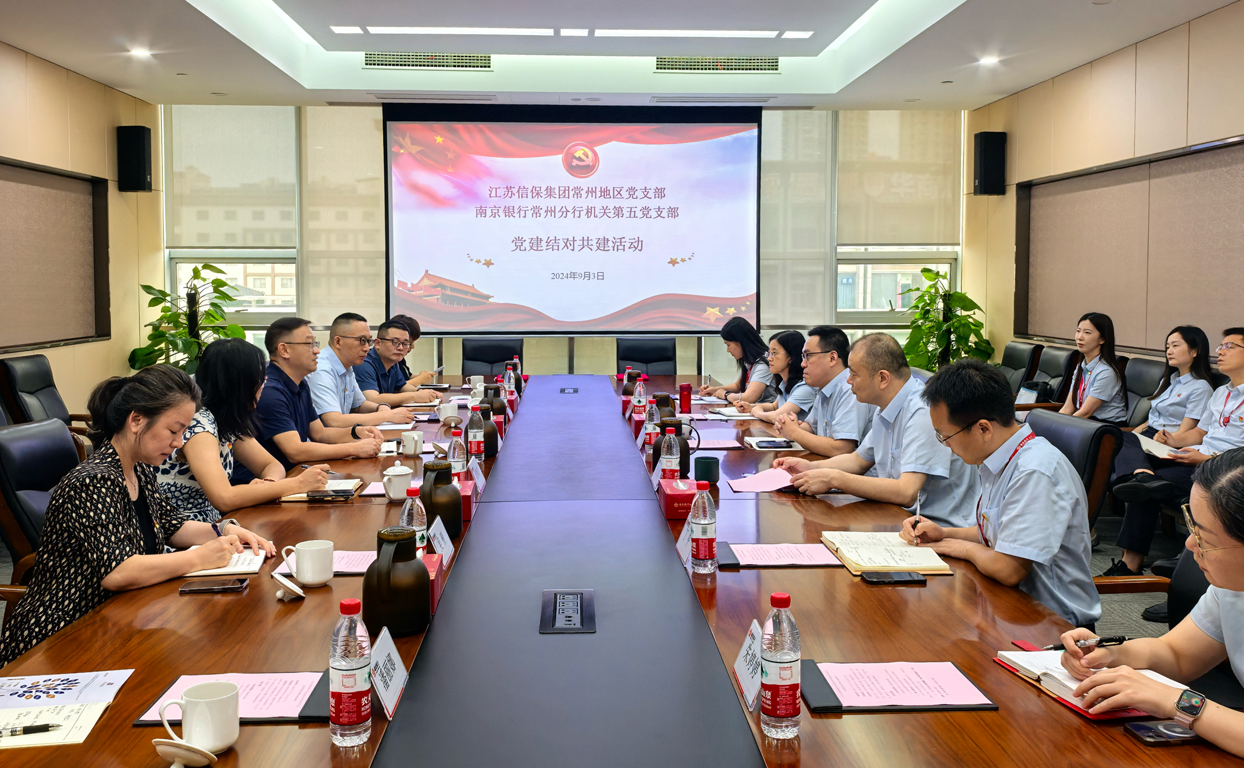 9月3日,江蘇信保集團(tuán)常州地區(qū)黨支部與南京銀行常州分行機(jī)關(guān)第五黨支部開展黨建共建,以高質(zhì)量黨建引領(lǐng)高質(zhì)量發(fā)展。