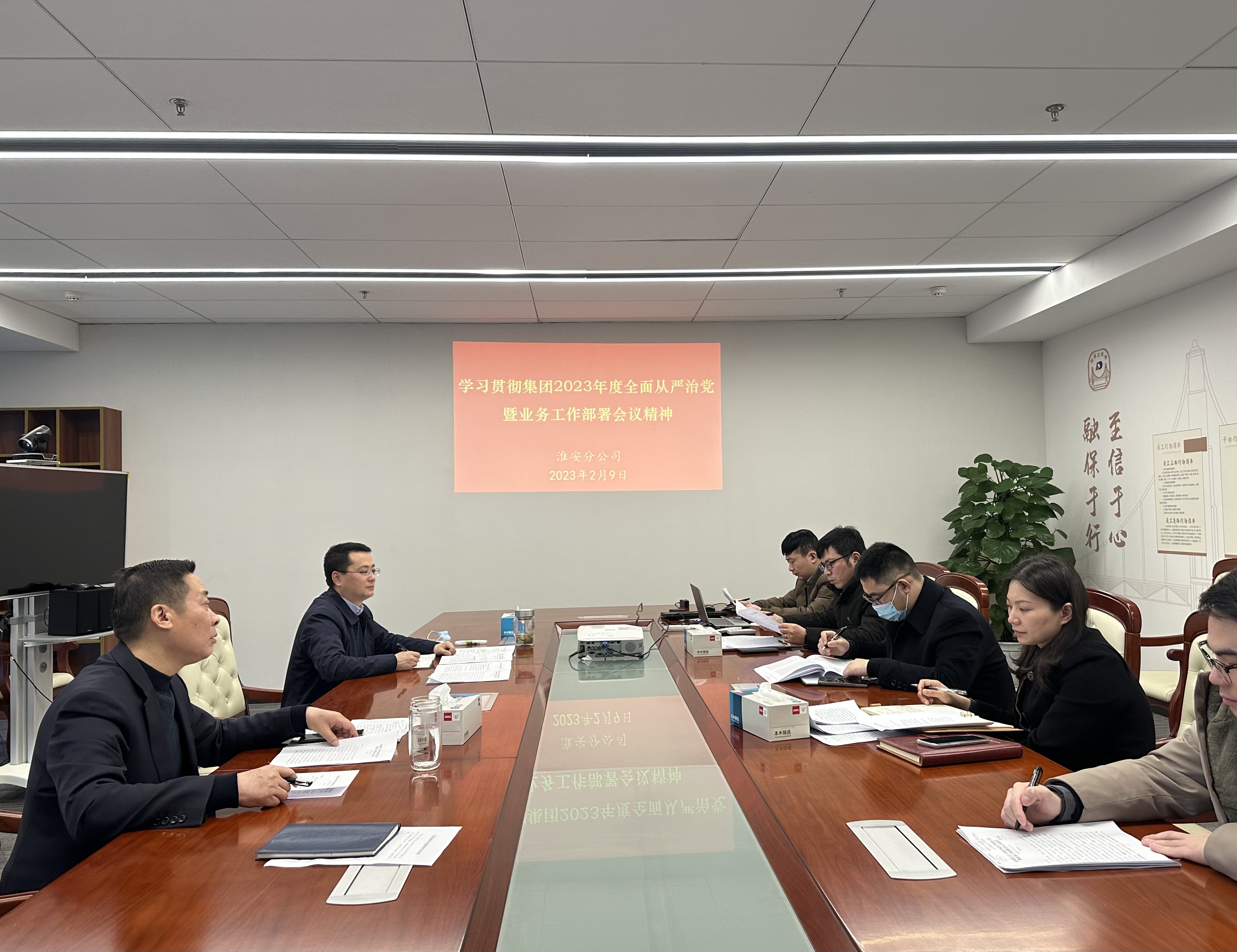 2月9日上午,淮安分公司召開會議,學(xué)習(xí)貫徹集團(tuán)2023年度全面從嚴(yán)治黨暨業(yè)務(wù)工作部署會議精神,研究部署分公司重點(diǎn)工作以及具體貫徹落實(shí)的措施。