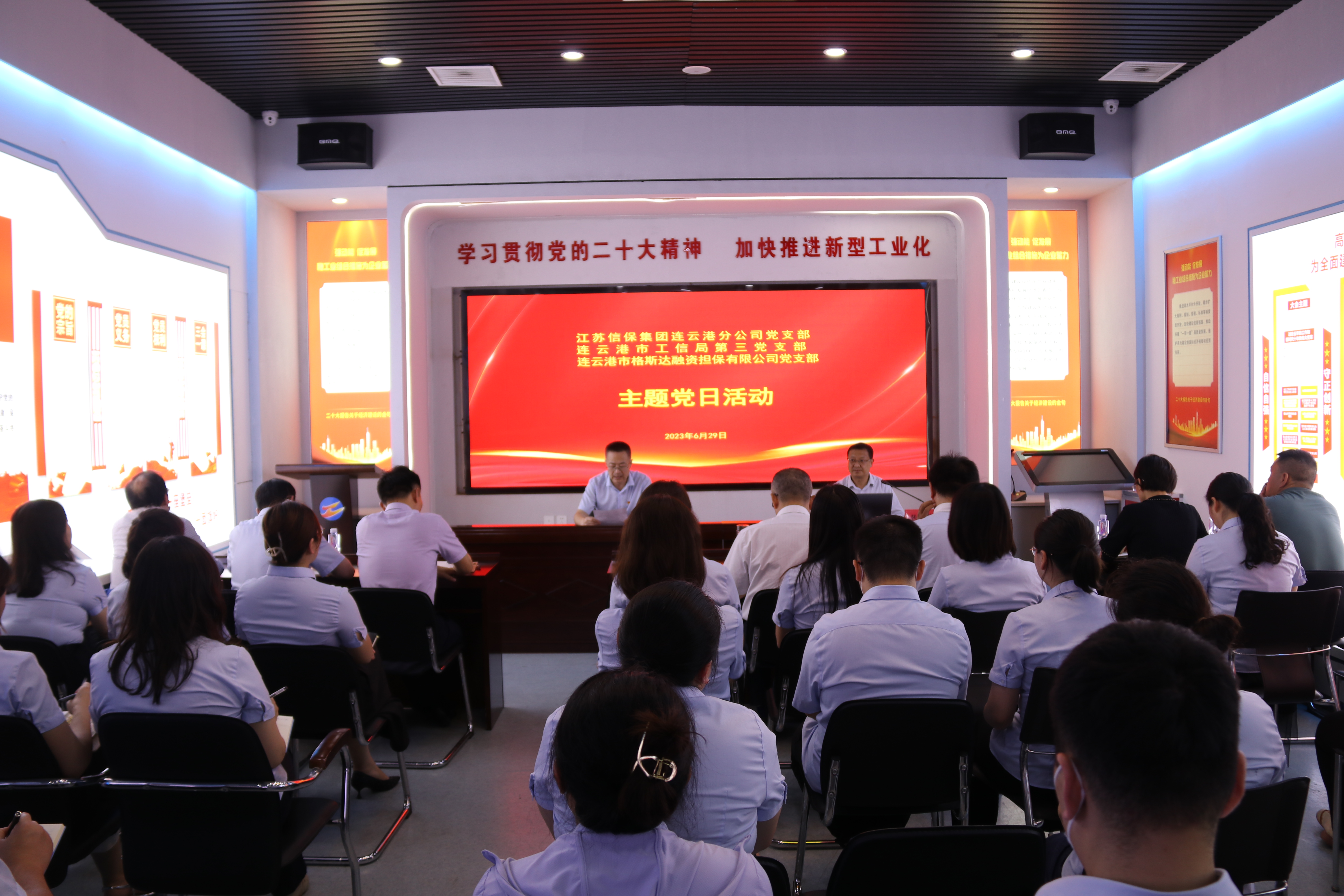 為隆重慶祝中國(guó)共產(chǎn)黨成立102周年,進(jìn)一步深入學(xué)習(xí)貫徹習(xí)近平新時(shí)代中國(guó)特色社會(huì)主義思想。6月29日下午,連云港分公司黨支部聯(lián)合市工信局第三黨支部、市格斯達(dá)融資擔(dān)保公司黨支部共同開展慶“七一”主題黨日活動(dòng)。活動(dòng)邀請(qǐng)人行連云港中心支行貨幣信貸科主要負(fù)責(zé)人進(jìn)行了專題講座。三個(gè)支部近40名黨員參加活動(dòng)。