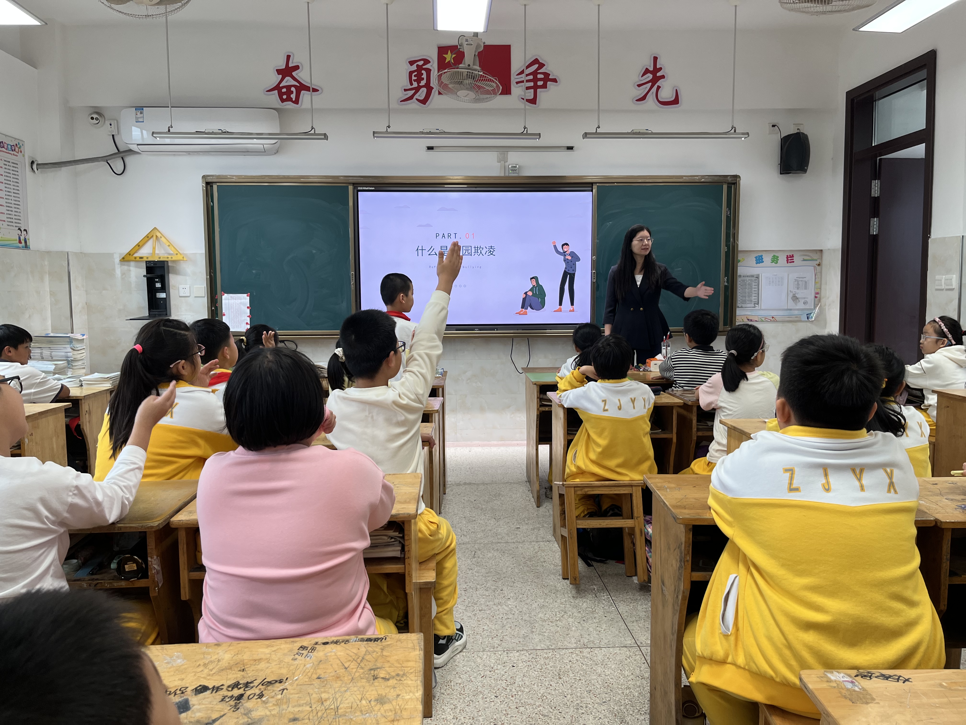 “同學(xué)們,你們知道什么是校園欺凌嗎?”“看完剛才的案例你們有什么想法?”活動(dòng)中,志愿者們以校園欺凌的實(shí)際案例為切入點(diǎn),采取穿插提問(wèn)等互動(dòng)方式,用通俗易懂的語(yǔ)言講解了校園欺凌的主要表現(xiàn)行為、校園欺凌的特點(diǎn)、校園欺凌的危害以及如何正確應(yīng)對(duì)校園欺凌等相關(guān)知識(shí)。同學(xué)們受益匪淺并紛紛表示:校園欺凌不是只在霸凌者和受害者之間。沒(méi)有發(fā)聲的群體,也在參與和扮演著推動(dòng)者的角色。面對(duì)霸凌,我們不能做吃瓜群眾,要在能力范圍內(nèi)施以援手,及時(shí)向老師、家長(zhǎng)報(bào)告。