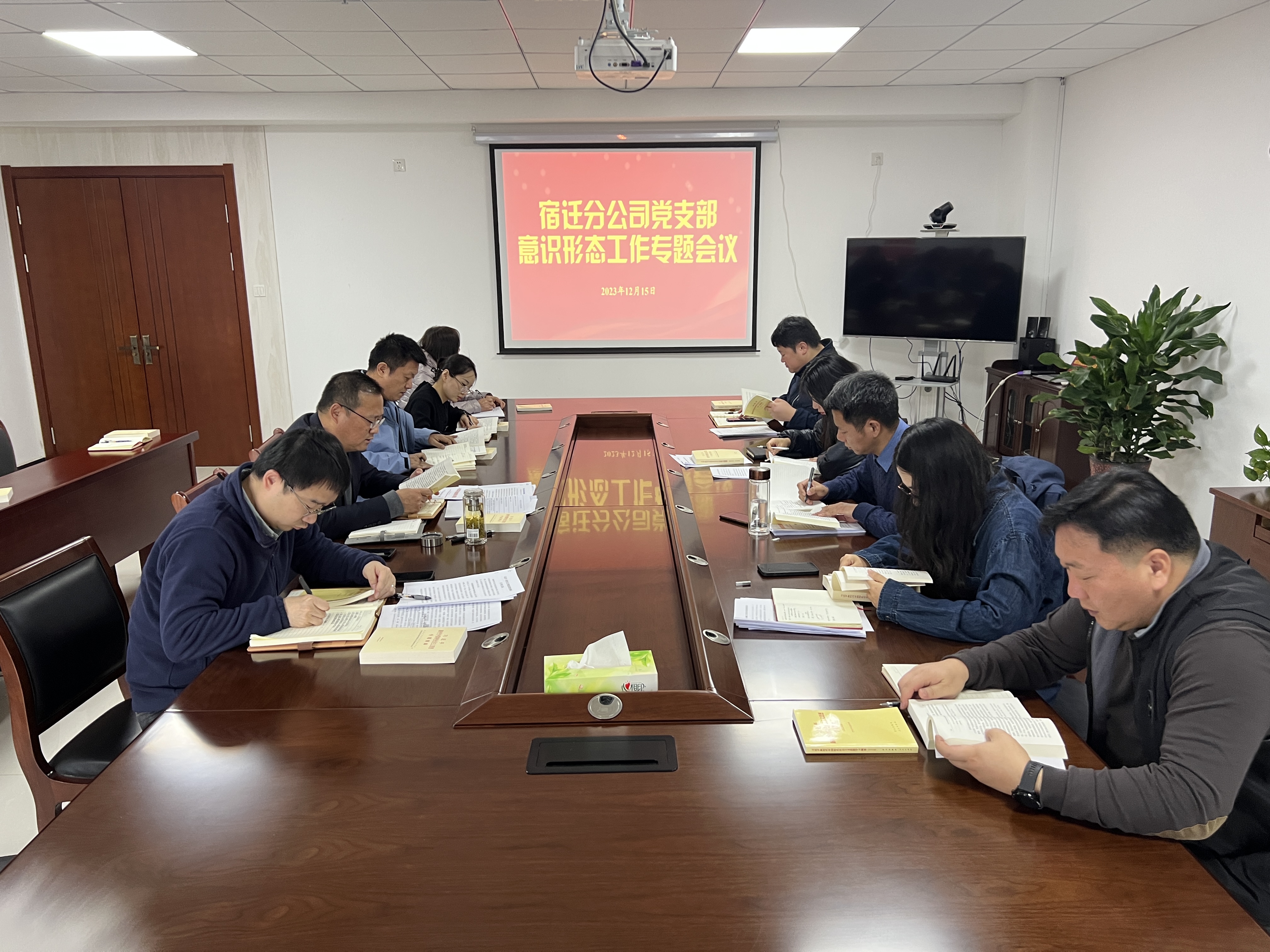 12月15日,宿遷分公司黨支部召開意識形態(tài)工作專題會議,深入學(xué)習(xí)領(lǐng)會習(xí)近平總書記關(guān)于意識形態(tài)工作的重要論述。黨支部負(fù)責(zé)人主持會議并講話,全體員工參加會議。