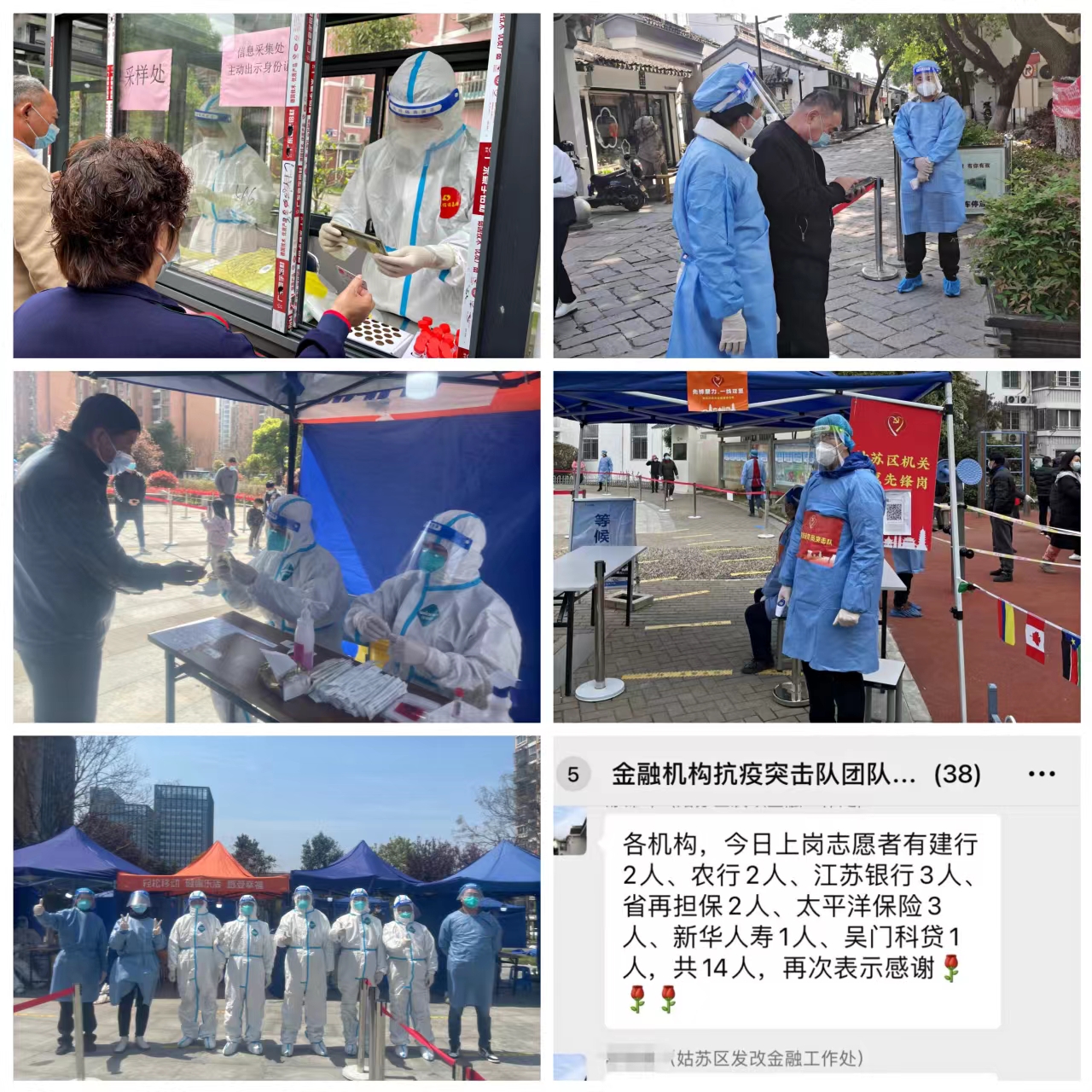 “由于疫情防控工作需要,明日姑蘇區(qū)全員核酸,急需14名志愿者,請能安排參加志愿者服務的單位速與我聯(lián)系……”蘇州本輪疫情發(fā)生以來,這樣的志愿者招募令,多次在姑蘇區(qū)金融機構(gòu)抗疫突擊隊微信群里響起,蘇州分公司志愿者隊伍聞令而動,積極響應,踴躍報名參加,投身一線。