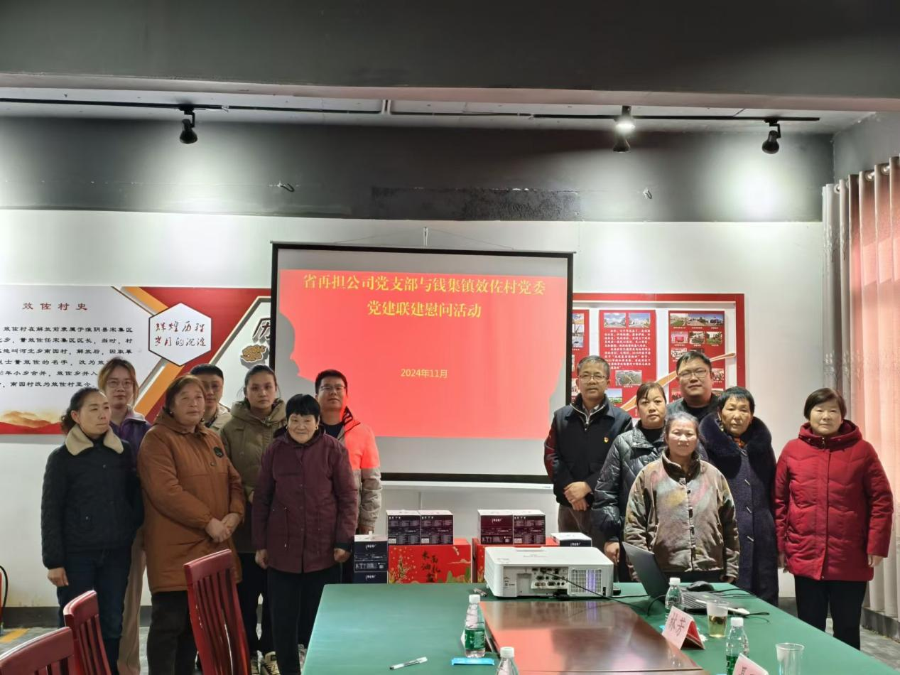 為進(jìn)一步助力鄉(xiāng)村振興工作,弘揚(yáng)社會(huì)主義核心價(jià)值觀,踐行國(guó)企的社會(huì)責(zé)任,11月27日,省再擔(dān)公司黨支部組織黨員代表赴沭陽縣錢集鎮(zhèn)效佐村開展黨建聯(lián)建活動(dòng),并為生活困難村民送去米面糧油等慰問品。