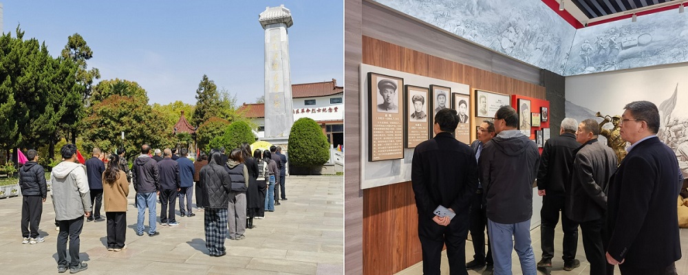 陵園內(nèi)的烈士紀(jì)念堂展示了當(dāng)?shù)亟倜沂康挠⒂率论E,一張張圖片、一段段文字都訴說著革命前輩在姜堰這片土地上的英雄壯舉,他們的英勇事跡和崇高精神,激勵(lì)著區(qū)域員工堅(jiān)定信仰、勇毅前行,以實(shí)際行動(dòng)傳承和弘揚(yáng)革命精神。
