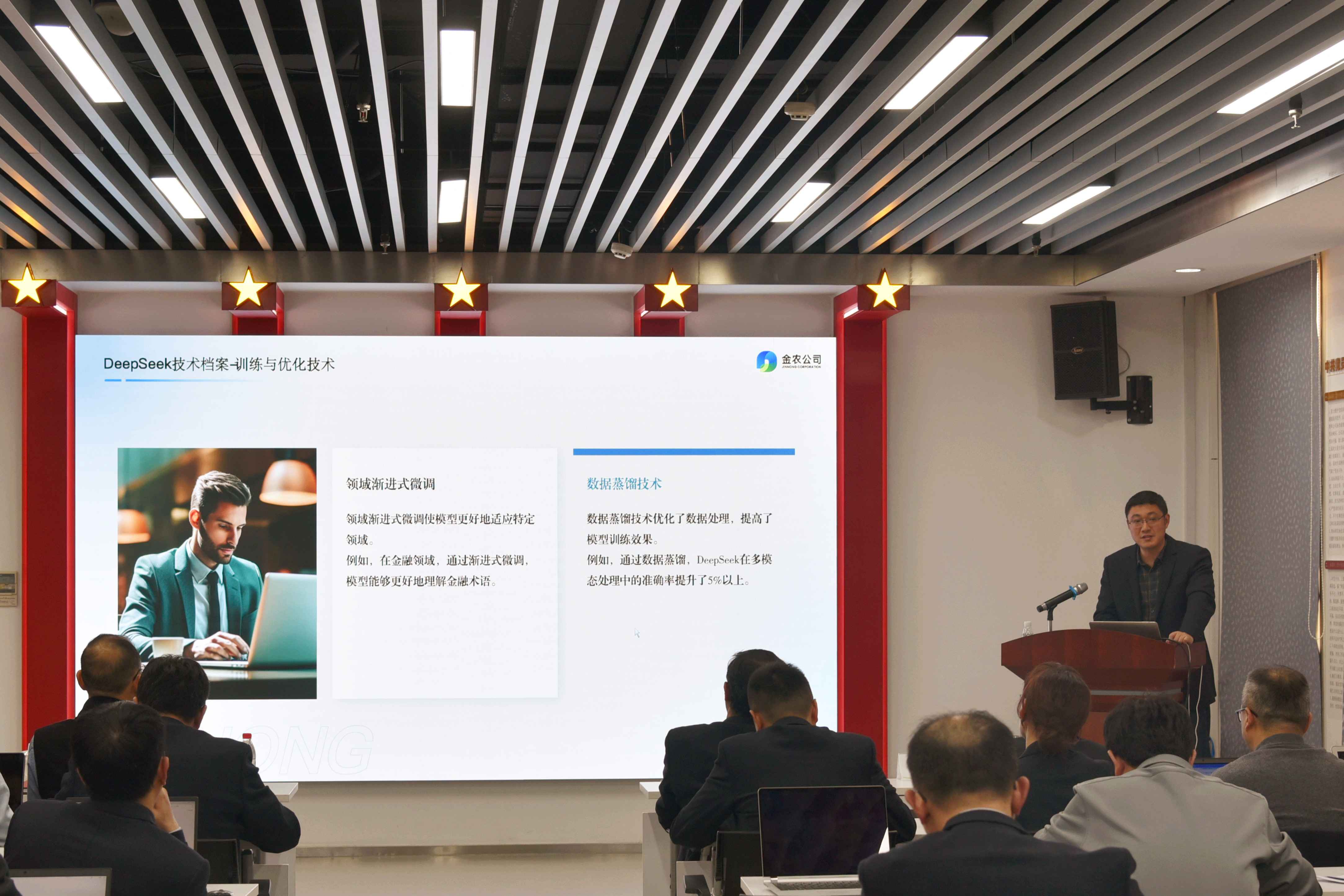 專(zhuān)題培訓(xùn)圍繞AI技術(shù)的發(fā)展情況,重點(diǎn)分析了大模型、大數(shù)據(jù)在金融領(lǐng)域的應(yīng)用場(chǎng)景,介紹了公司研究、接入、部署、適配、試用DeepSeek等的做法和進(jìn)展,并就相關(guān)的業(yè)務(wù)、數(shù)據(jù)和技術(shù)問(wèn)題開(kāi)展研討。(金農(nóng)公司 向鯤)