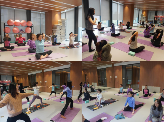 此次活動(dòng)邀請(qǐng)了專業(yè)瑜伽教練為大家授課?;顒?dòng)中,老師一邊講解知識(shí),一邊悉心指導(dǎo)動(dòng)作要領(lǐng)。大家換上了舒適、輕便的運(yùn)動(dòng)裝,在悠揚(yáng)清雅的音樂(lè)聲中,閉上雙眼、調(diào)整呼吸、全情投入,跟隨教練的指引盡情舒展身體、放松心情,仿佛沉浸在無(wú)限美好安寧的精神世界中。