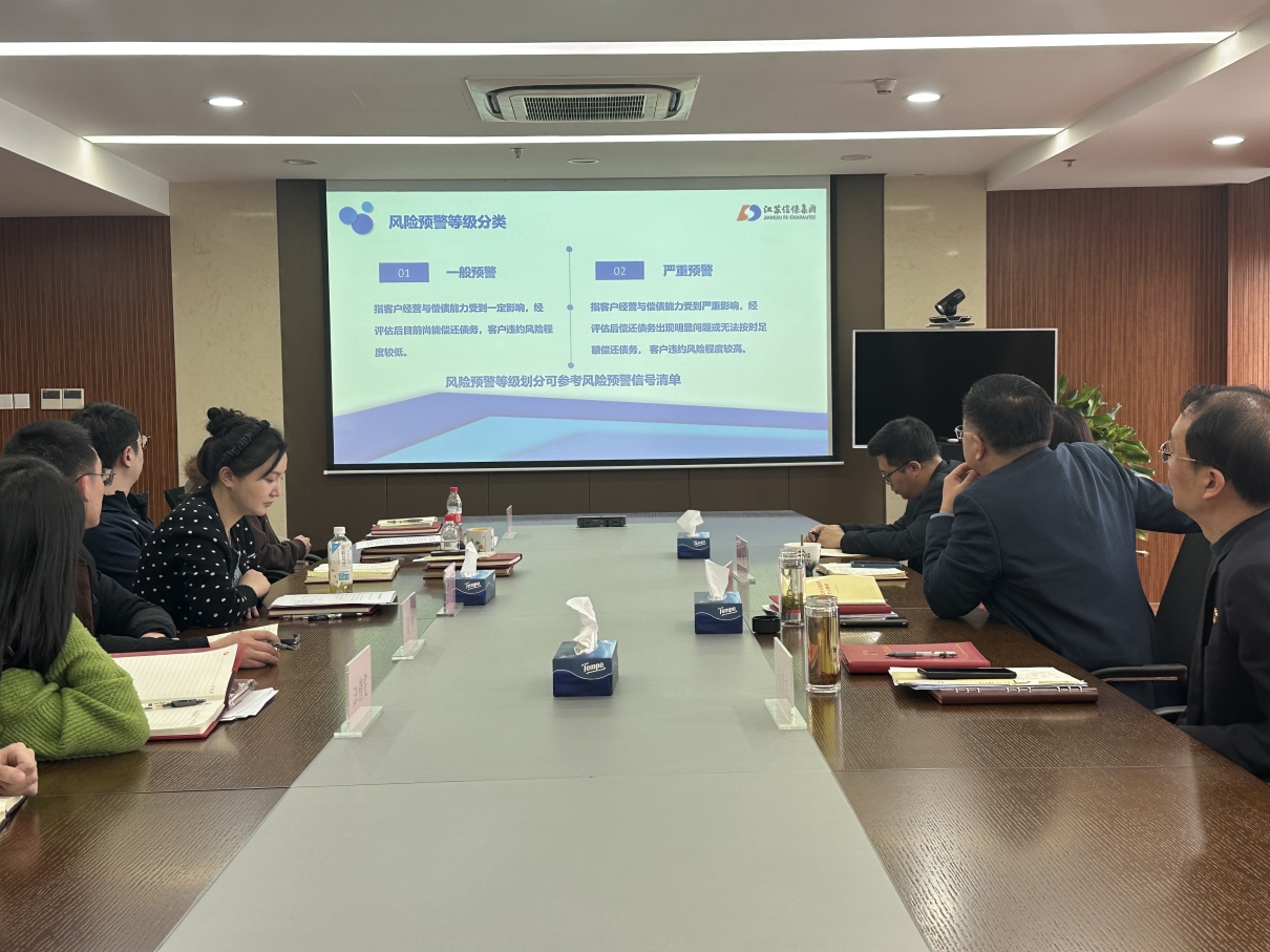 本次培訓重點解讀集團新修訂的《江蘇省信用再集團有限公司風險預警管理辦法(2024 年修訂版)》《關于嚴控風險預警客戶新增業(yè)務的通知》的主要變動。詳細闡釋了風險預警等級的識別、劃分及標記方式,并圍繞風險預警操作流程要點,結合公司業(yè)務案例,提示風險預警關鍵要點。會上,業(yè)務部門和風控部門圍繞如何優(yōu)化風險預警工作、提升風險防范能力展開深入交流。