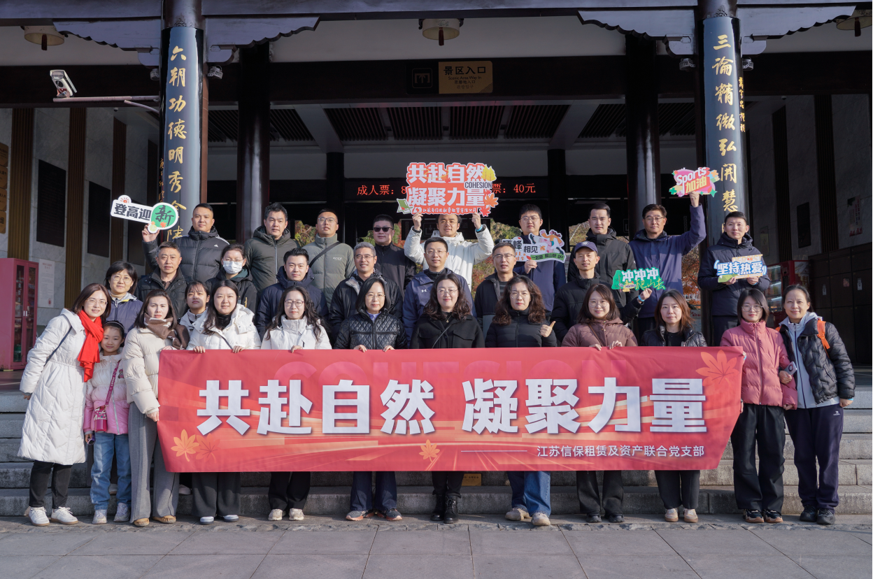 為豐富員工業(yè)余文化生活,進一步提升團隊活力和凝聚力,12月14日,江蘇信保租賃及資產聯(lián)合黨支部赴南京市棲霞山風景區(qū),開展“共赴自然 凝聚力量”徒步登山活動,江蘇信保租賃及資產聯(lián)合黨支部、租賃及資產管理公司30余名員工及家屬參加活動。